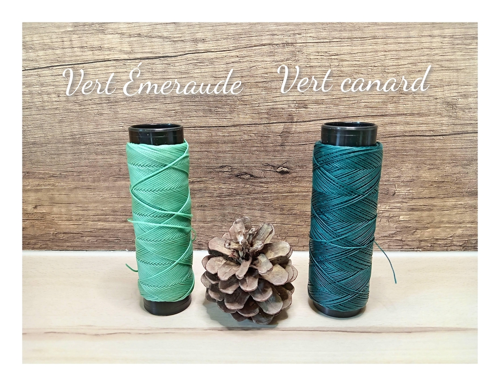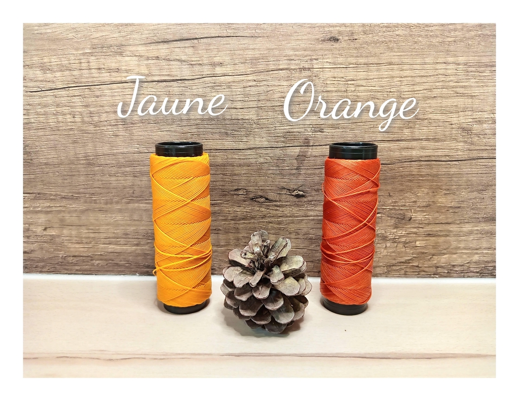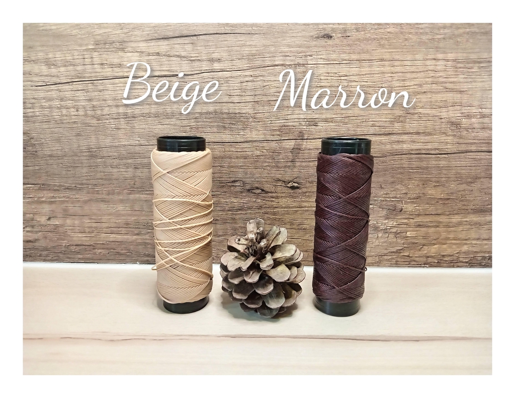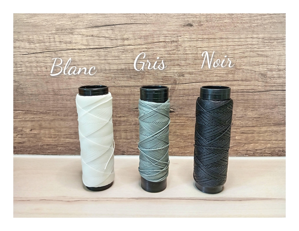 Le fil que j'utilise est un fil polyester ciré plat certifié OEKO-TEX, ses colorations sont garanties sans produit toxique.